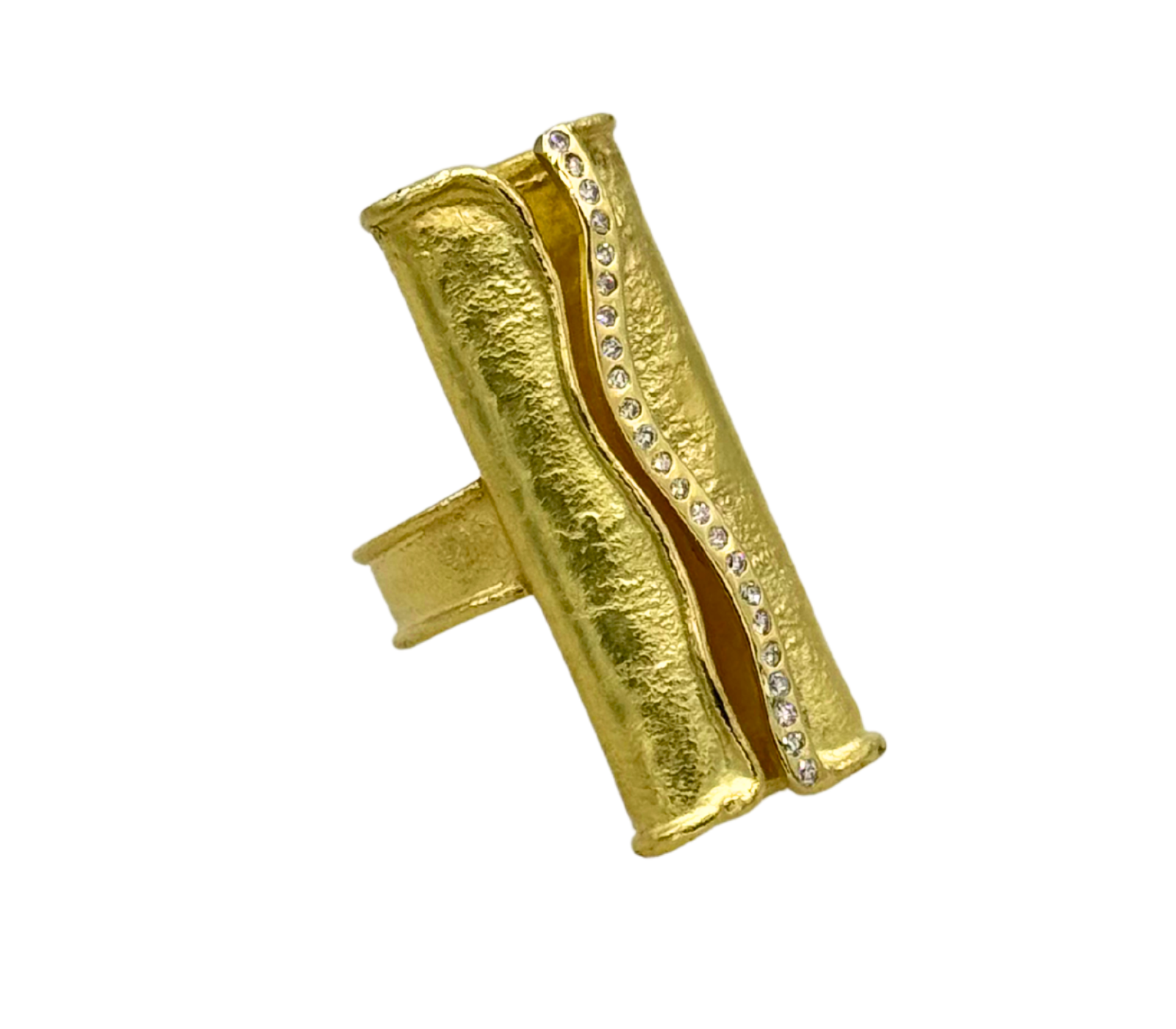 Questo anello, unico nel suo genere, è stato ideato da Daniela Vettori per imprimere l'emozione ricevuta alla vista delle foreste di bambù del Giappone.