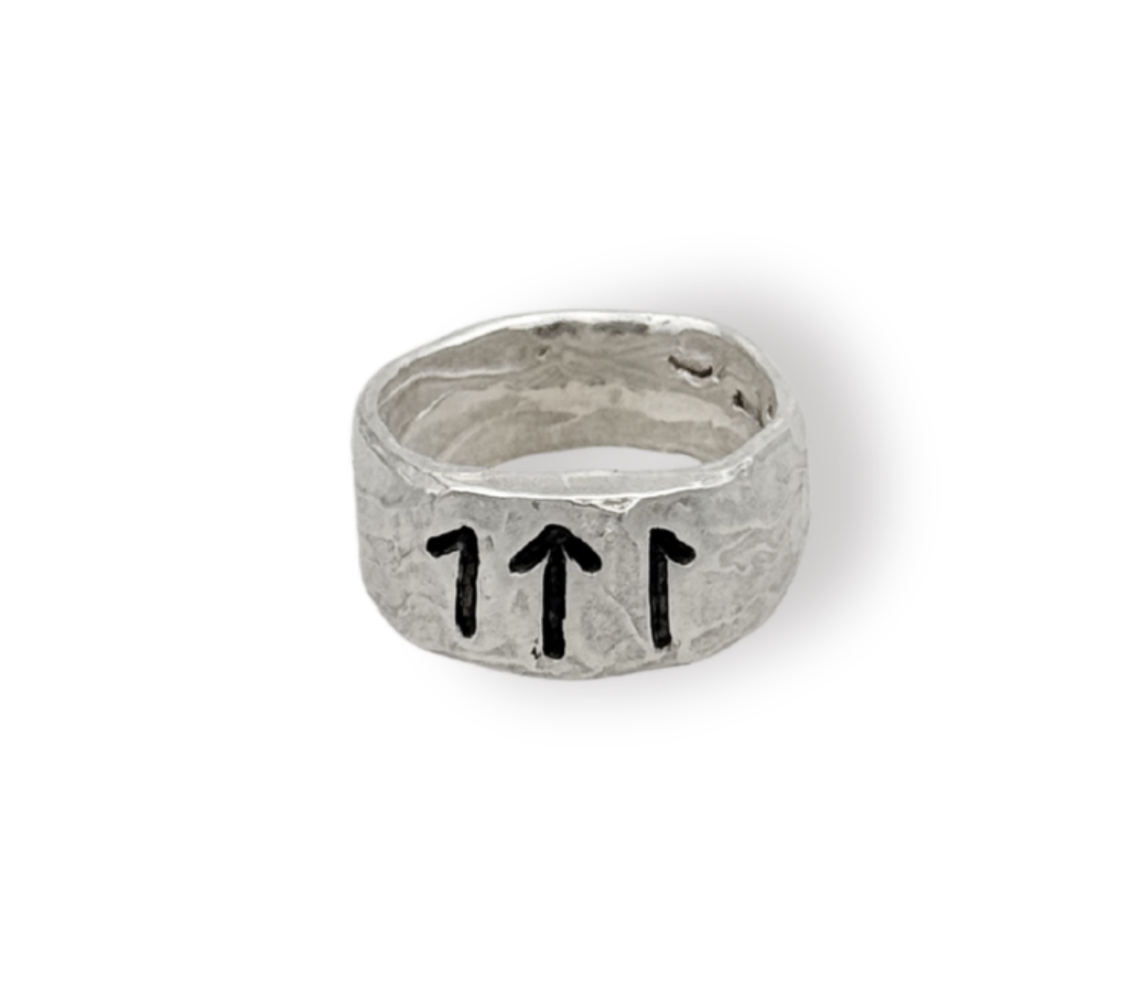 Su questo anello massiccio sono state incise e successivamente brunite 3 rune.