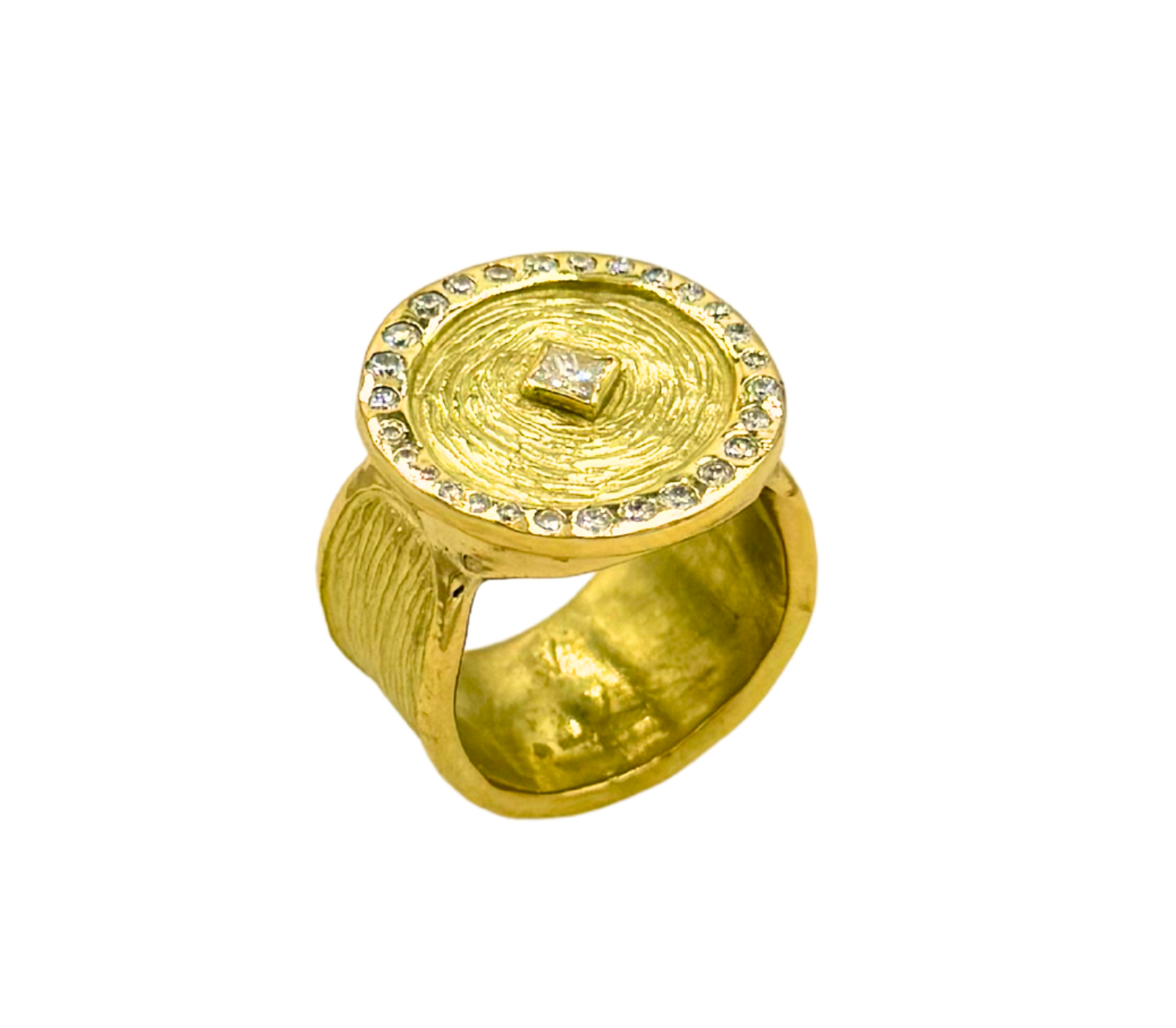 Questo anello rappresenta il logo Daniela Vettori, ed è il più antico simbolo del sole e dell'oro.