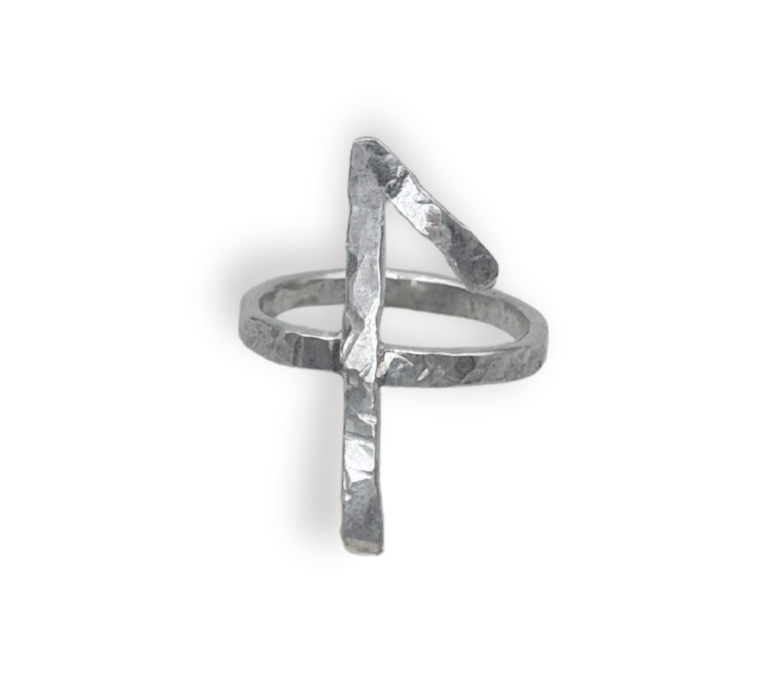 Anello runico in argento 925 lavorato a mano da Magal con tecnica mista.
