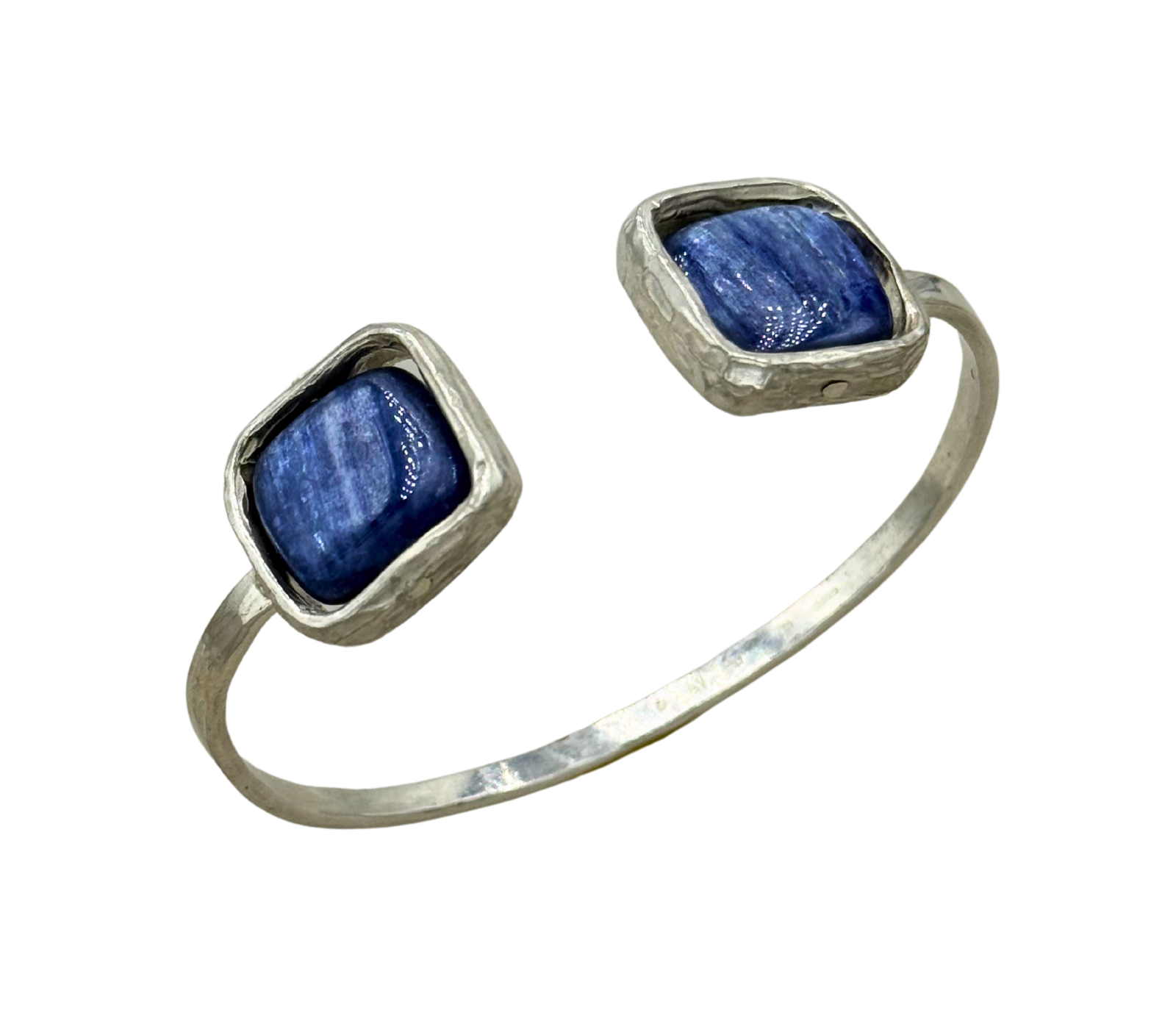 Bracciale in argento 925 battuto a martello con l'inserimento di due kyaniti.