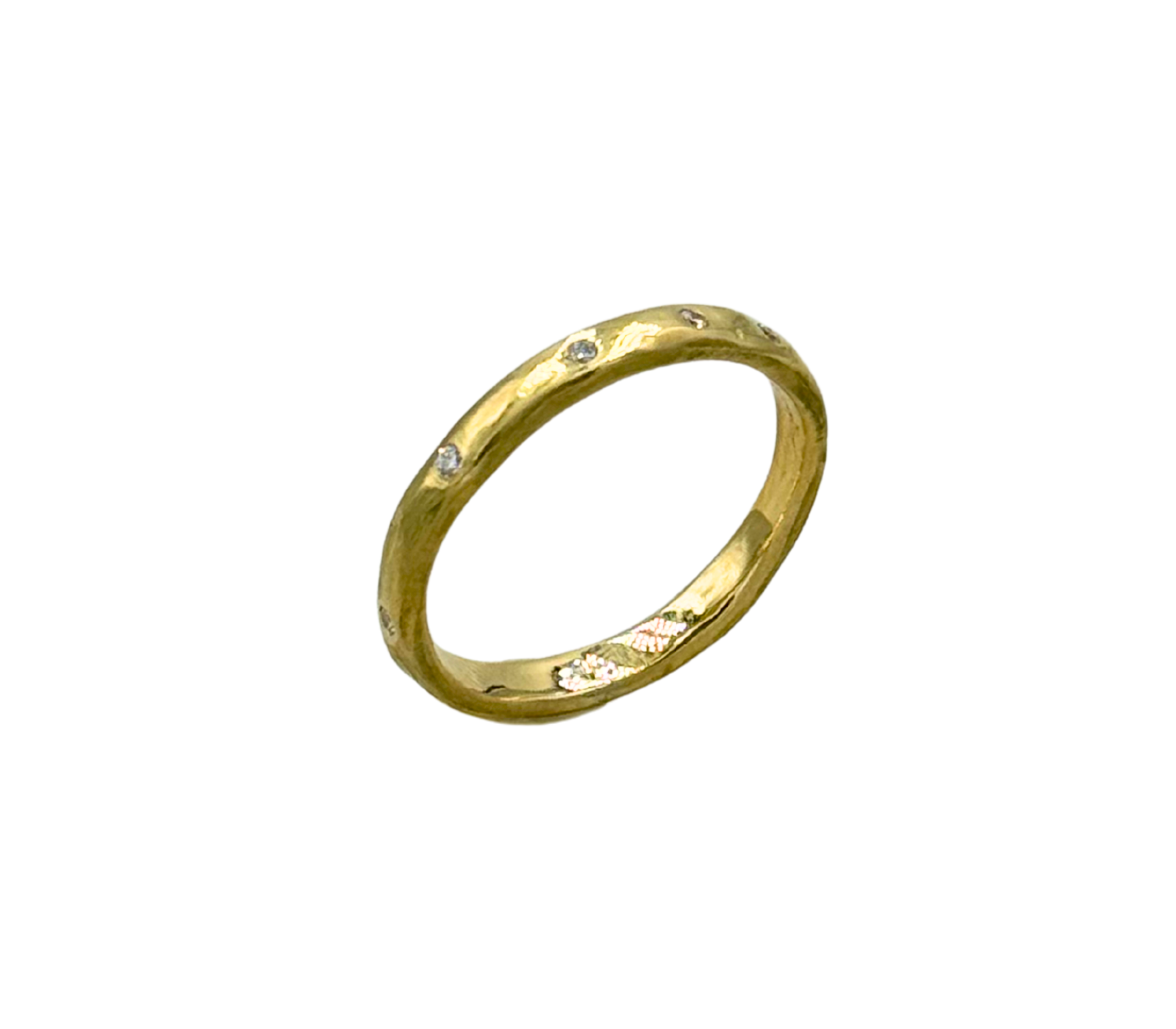 Le sue faccette sono irregolari e i diamanti vengono incastonati in maniera casuale.