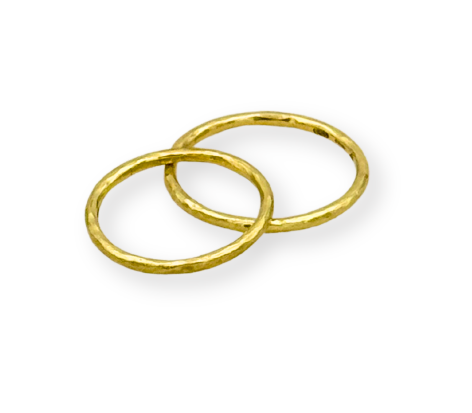 Queste fedi in oro 750 sono lavorate interamente a mano nel nostro laboratorio orafo di Vicenza. Il tipo di lavorazione utilizzata è una battitura a martello manuale che rende le fedi sfaccettate e luminose.