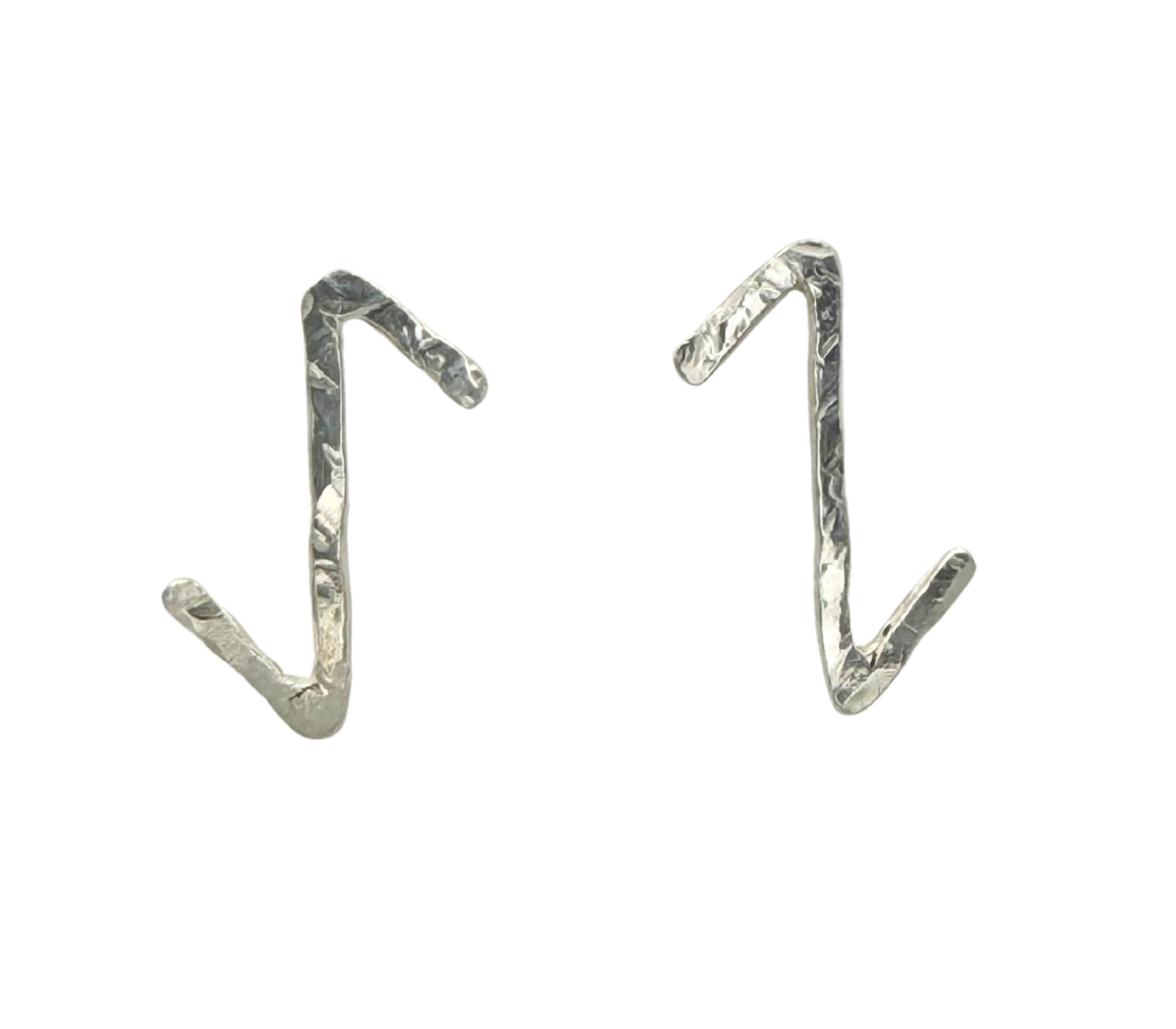 Orecchini in argento 925 lavorati a fuoco e martello da Magal nel laboratorio di Vicenza.