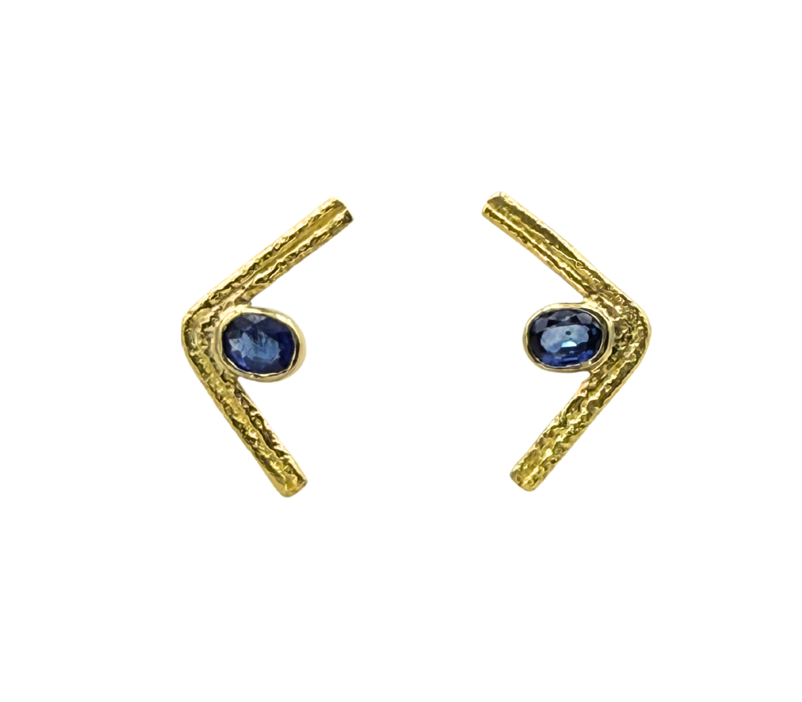 Questi orecchini sono lavorati in oro 750 e hanno incastonati due zaffiri ovali sfaccettati.