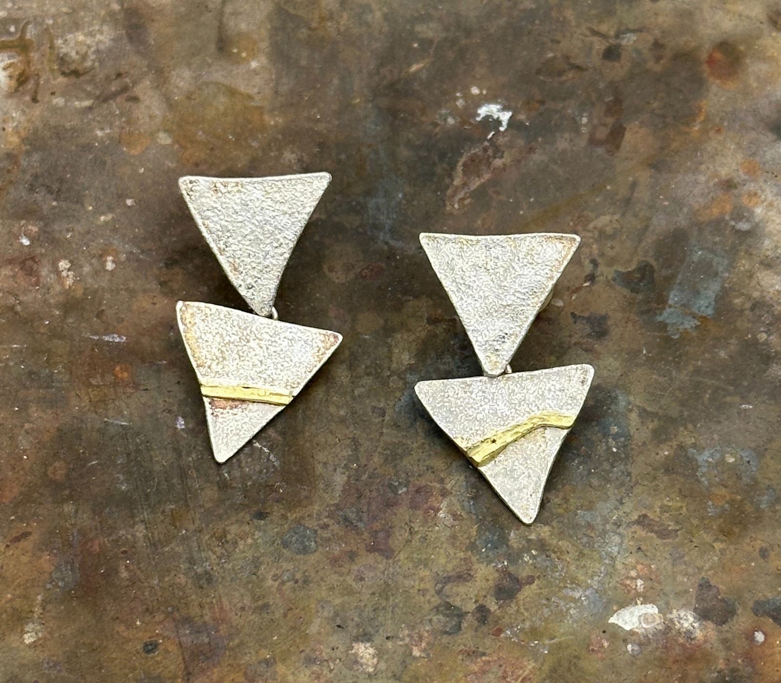 Ogni paio di orecchini sono unici e asimmetrici, vengono lavorati uno ad uno da Magal in argento 925 e oro 750 nel laboratorio di oreficeria artistica di Vicenza.