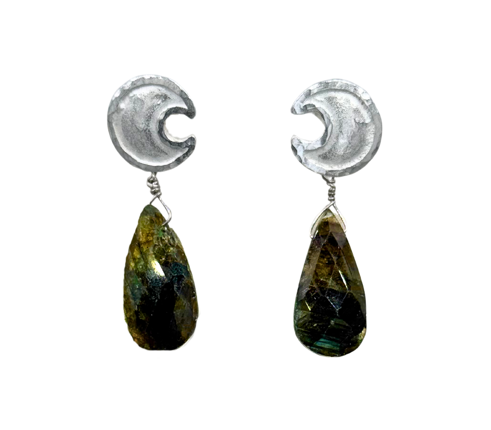 In questo caso gli orecchini sono stati impreziositi da due gocce di labradorite.