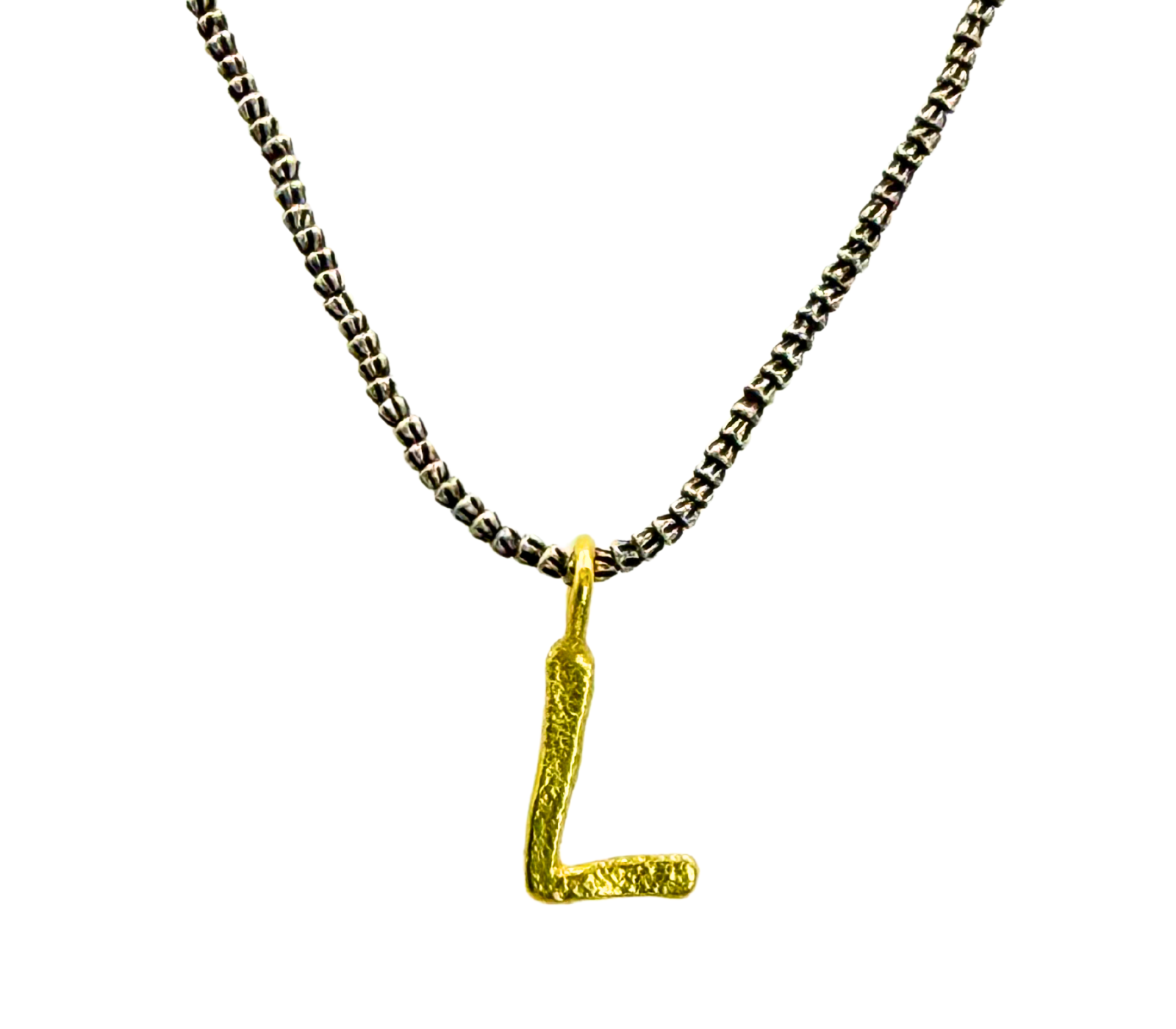 Le iniziali sono state pensate da indossare con il cordino di pepite d'argento.