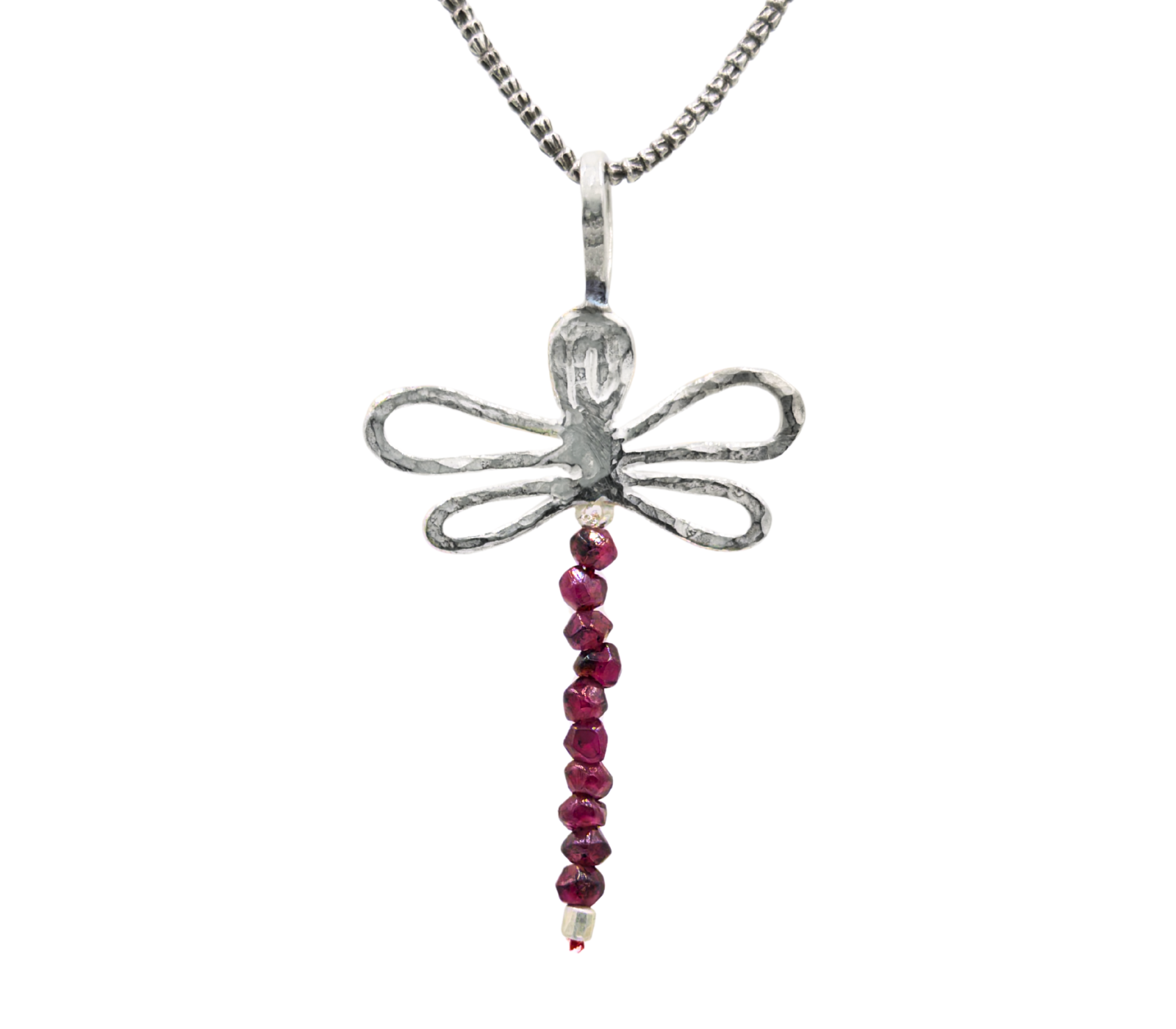 Pendente in argento 925 e granati lavorato interamente a mano con tecnica mista da Magal.