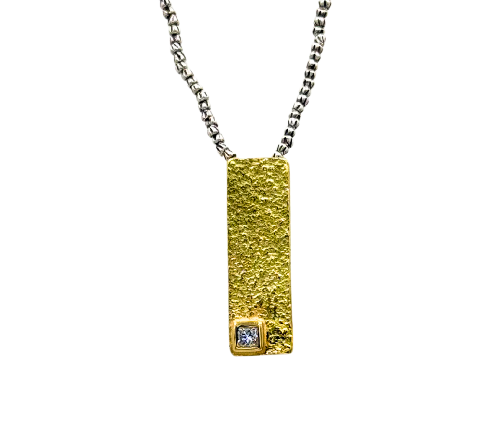 Pendente in oro 750 lavorato interamente a mano nel nostro laboratorio orafo secondo l'antica tecnica a fuoco e martello.
